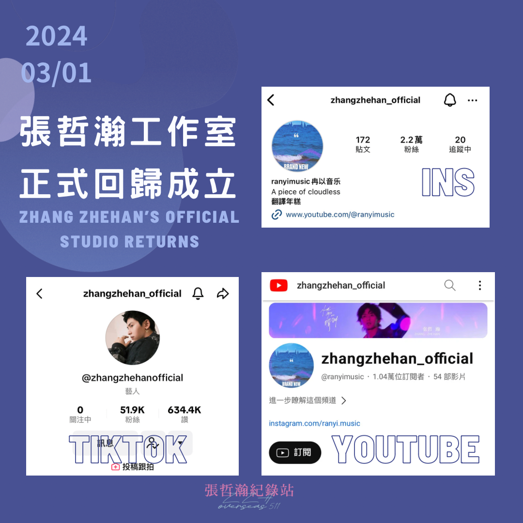 張哲瀚工作室回歸 Zhang Zhehan's official studio returns 2024-03-01 ! ! It's truly a promising start to the year! !